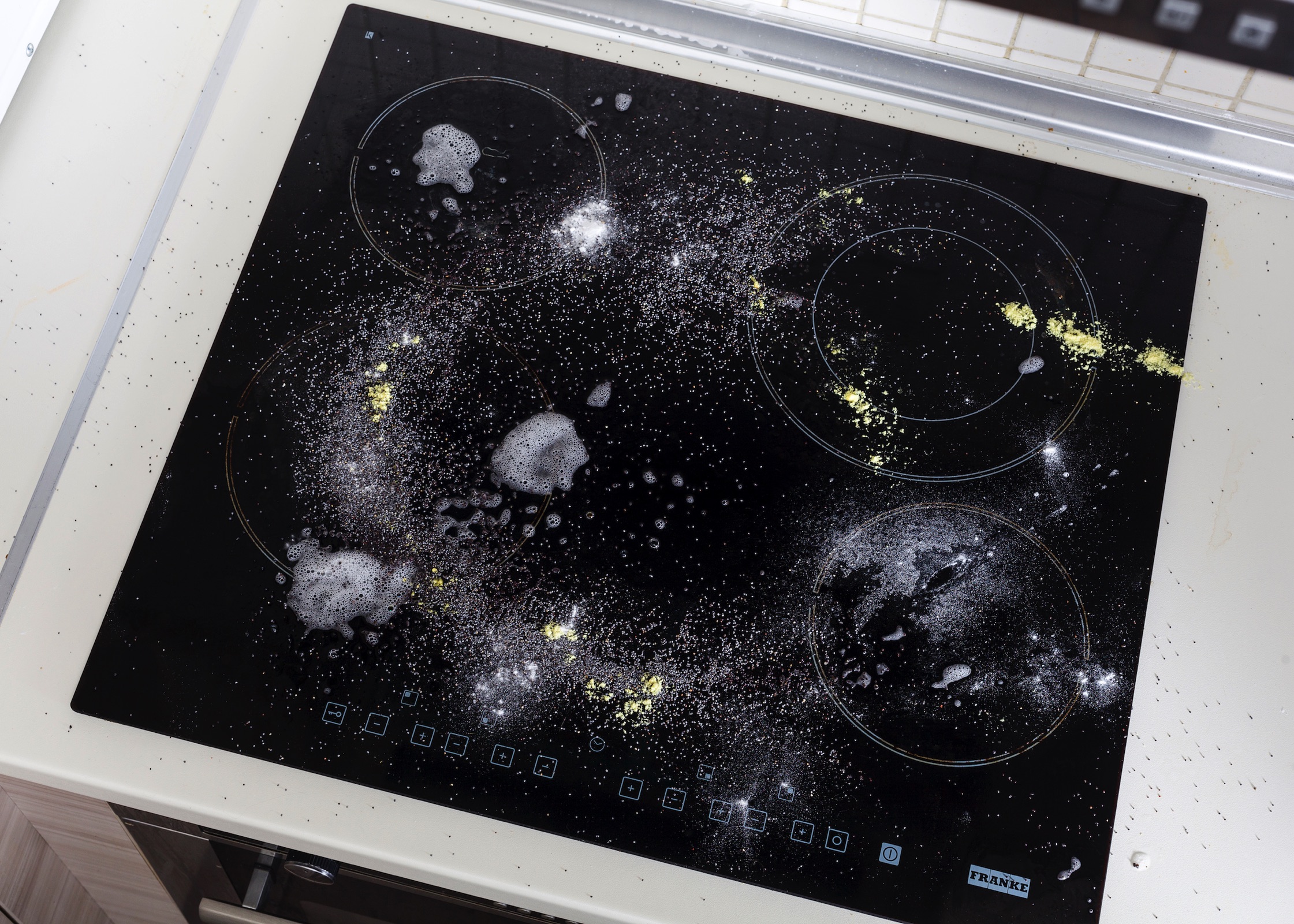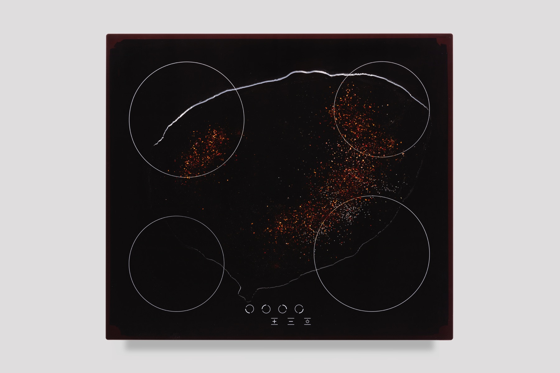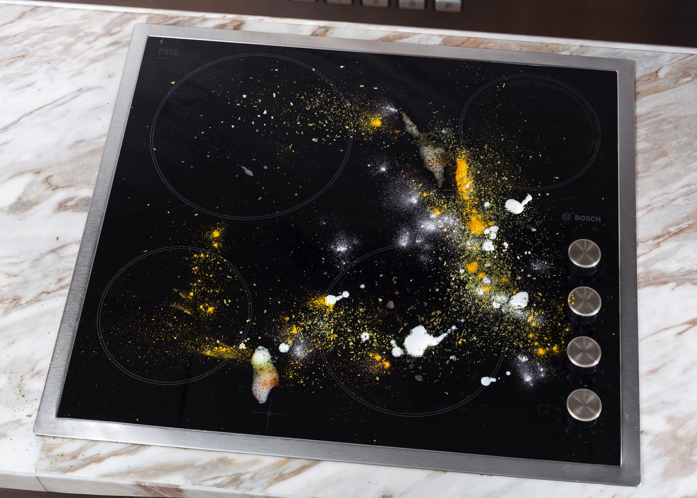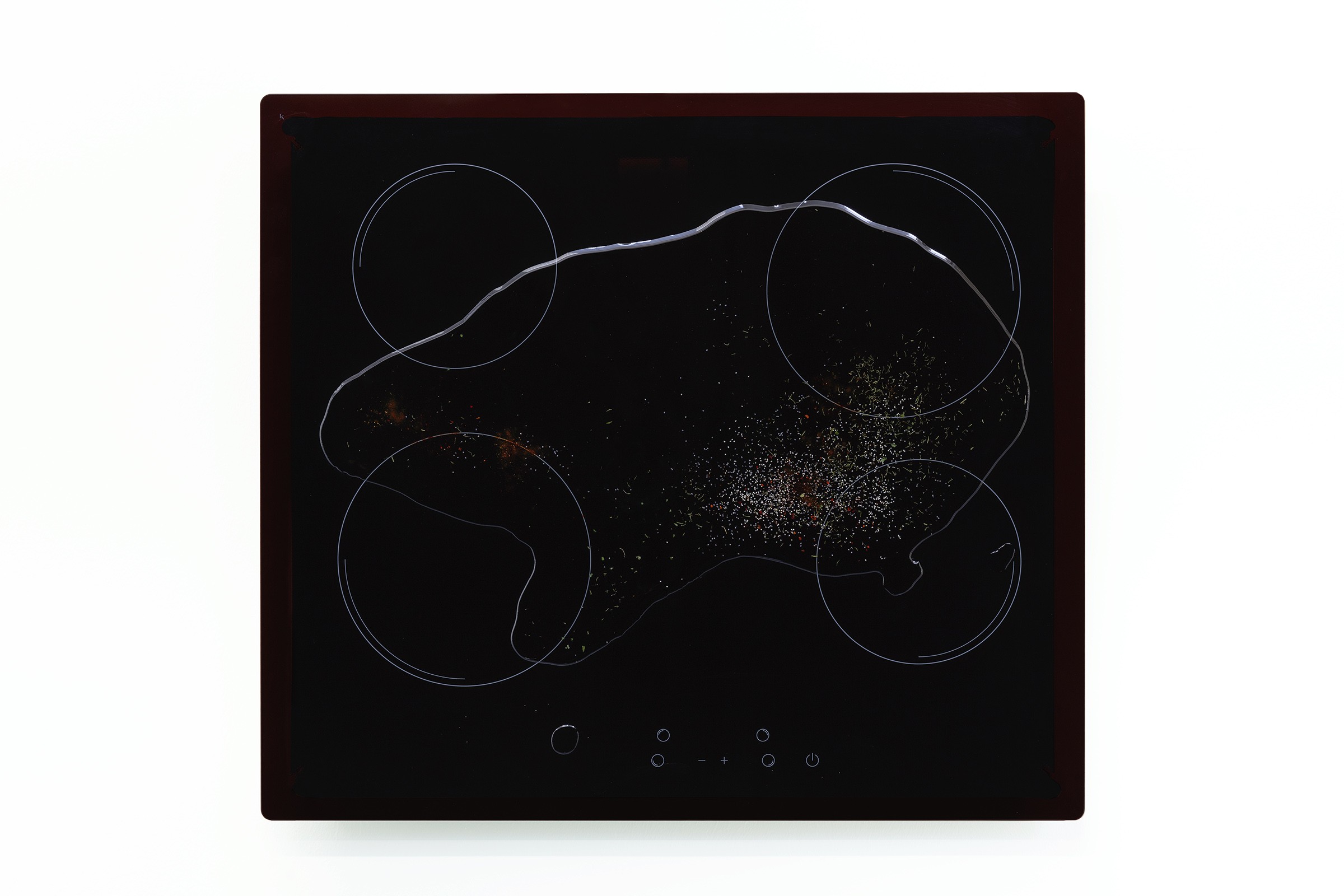 A prescursor to the Home Economics series was a sequence of photographs of paintings on hobs made with herbs, spices and cleaning products in the kitchens of users of the institution: SALT Galata, Istanbul, produced for the exhibition curated by Sohrab Mohebbi.