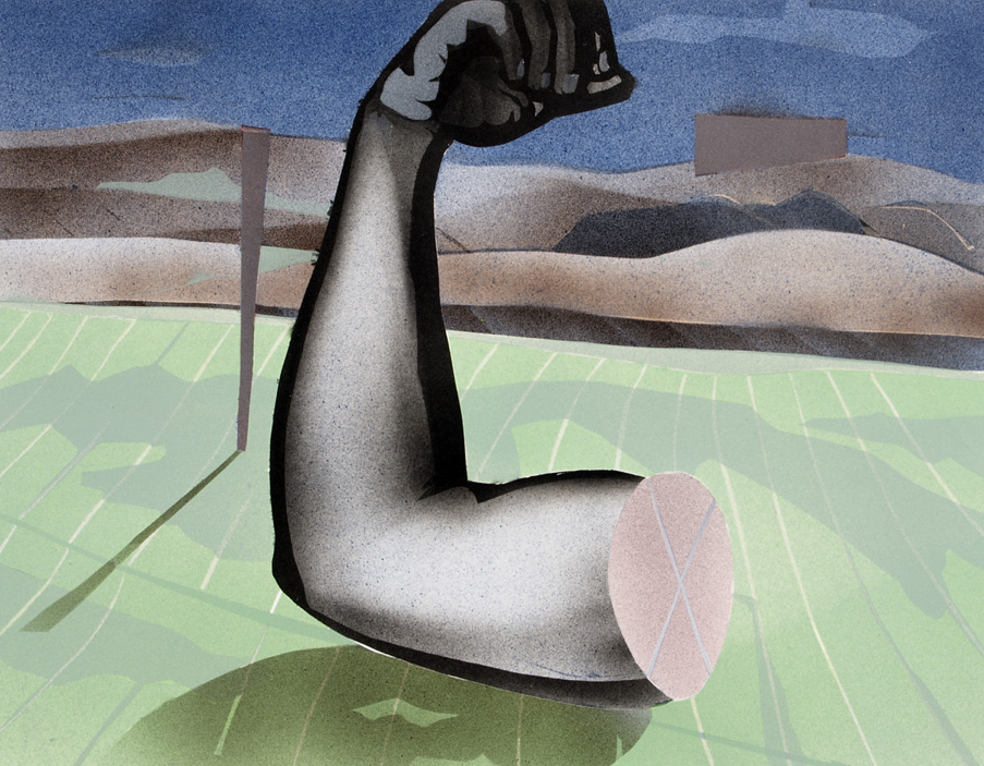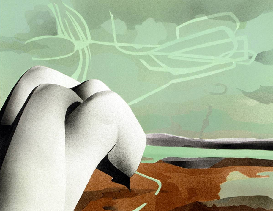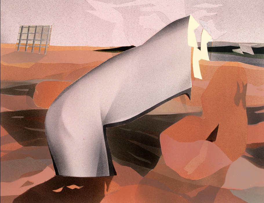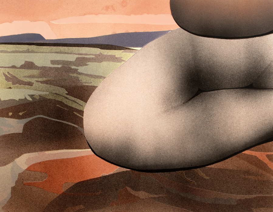 A series of artist's impressions of fictional sclutpure parks. Each depicts isolated body parts - whose material state is not clear, though grey in tone - situated in roughly composed landscapes in saturated colours. Made for the publication Magnetic Promenade and Other Sculpture Parks. See Publications & Editions.